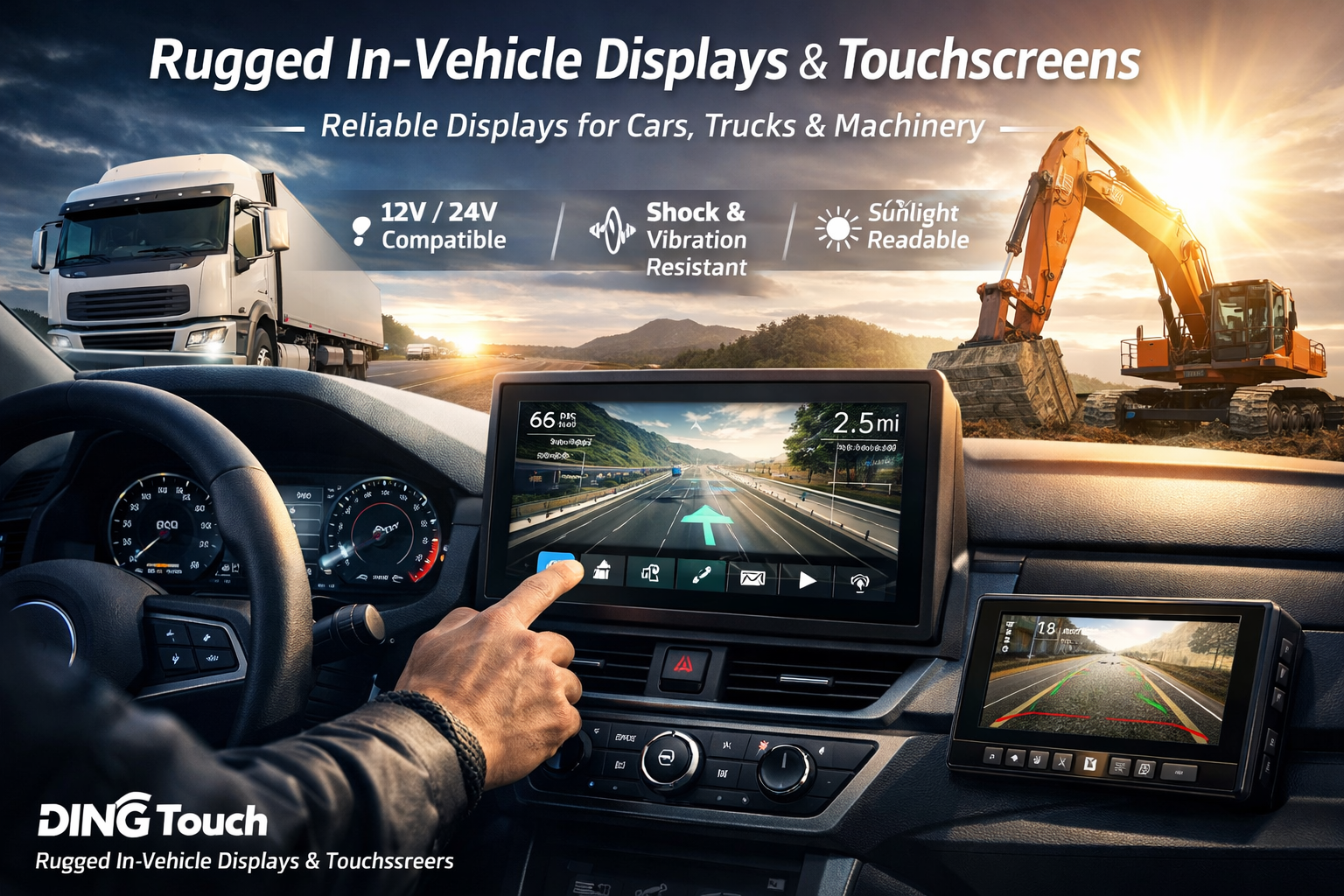 DINGTouch offers a comprehensive range of in-vehicle monitors and touchscreens, available in multiple sizes and aspect ratios to suit diverse applications.